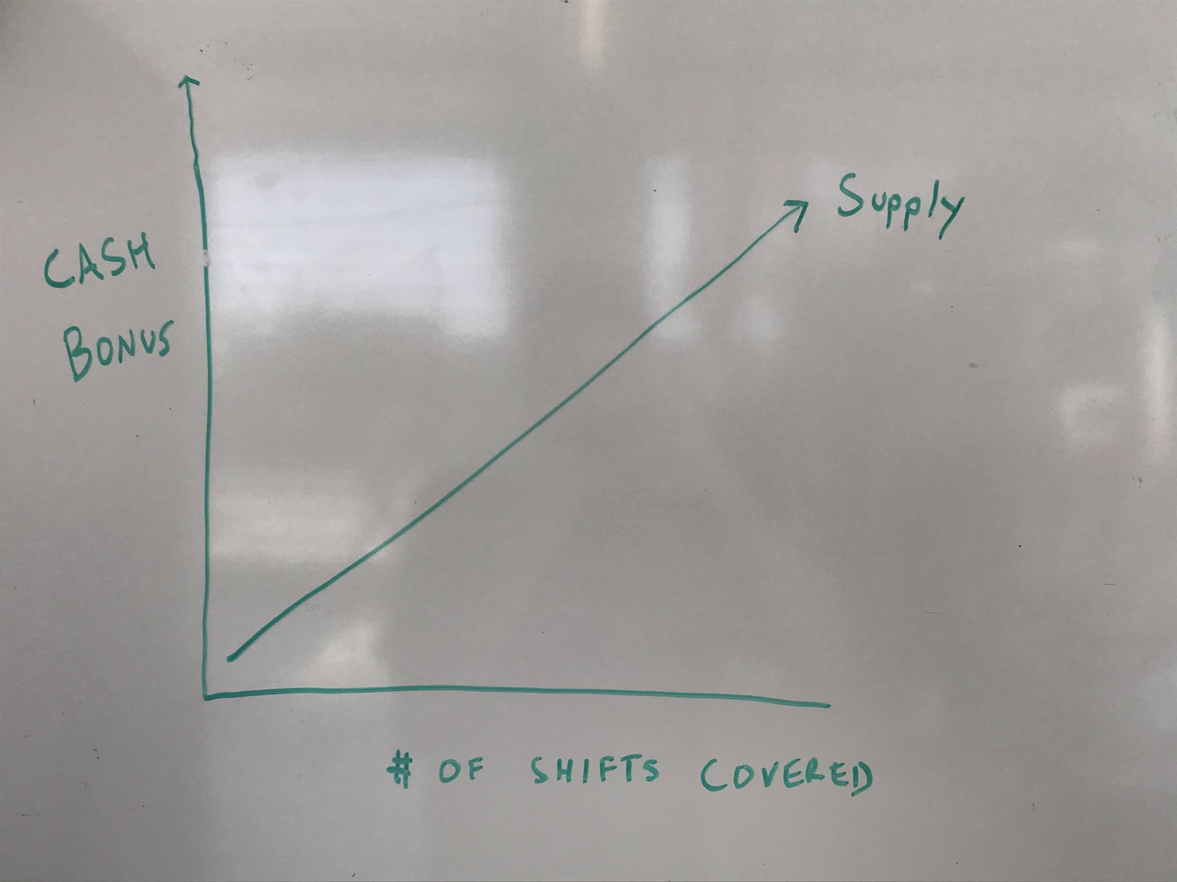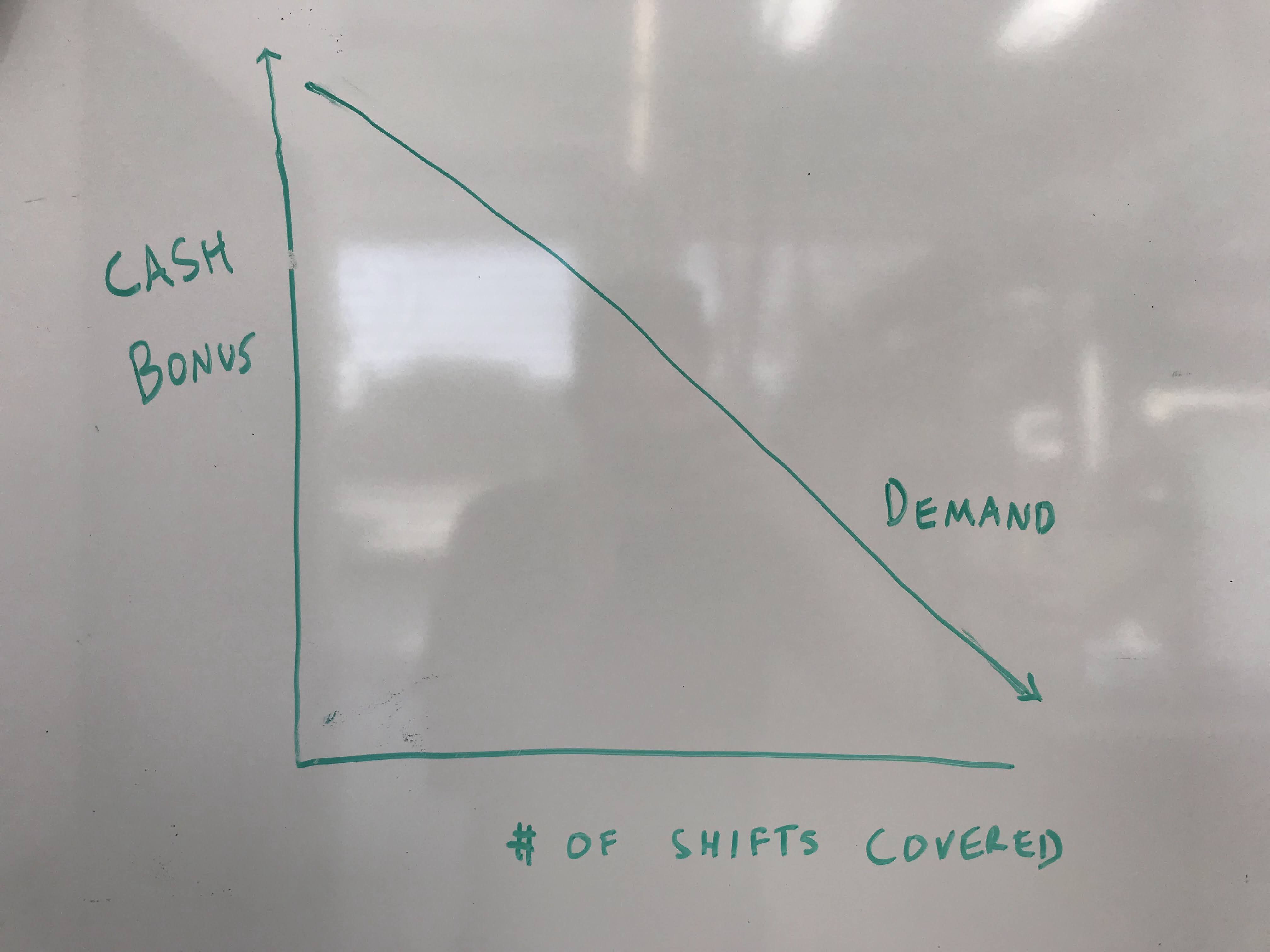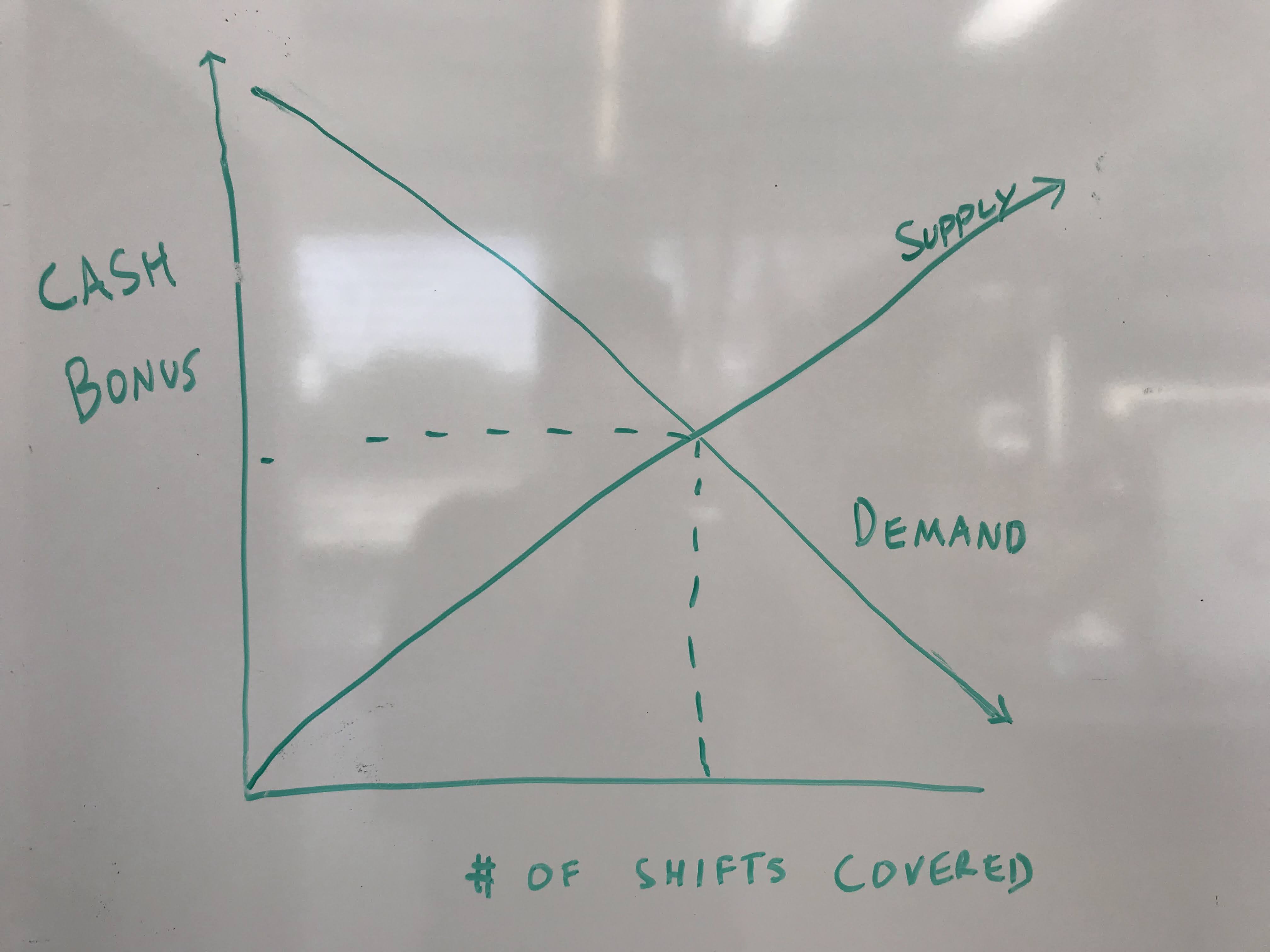 Before our recent staffing changes, this time of year our work emails begin pinging with last minute attempts to get the upcoming Thanksgiving, Christmas and New Year holidays off of work. Under most circumstances, staffing issues aside, it is a pretty easy process to get a day off work. However, during the holidays, it is a completely different story. In order to get a holiday off of work, there’s usually an added price associated with your standard trade off request. People want to be with their families on the holiday, and when the typical email of “hey can anyone work my shift?” is met with crickets, a bonus amount of cash is usually thrown into the equation to get your shift covered. I did a bit of digging into my email archives to gather some data points on prices of getting work off to be with your family on the holidays. It’s very much back of the napkin analysis, but I think it illustrates the concept of supply and demand in determining price quite well.