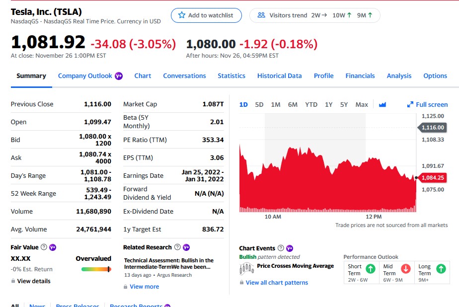 There is a lot more analysis to be done, but P/E ratio is a big factor in determining if I’m willing to invest in the company. It’s a good first step in starting to understand what makes a stock cheap vs. expensive. Earnings stay relatively stable over a quarter while the stock price jumps around with day to day news and stock market pressures. If you figure out what P/E ratios you want to buy that stock at, you can then buy the stock at the P/E ratio and not the price as a guide point. P/E’s should be used when comparing like companies in similar industries. Some P/E ratios are insanely high due to expected performance of a company vs. actual earnings. Take Tesla (TSLA) for example. At the same time of the Lowe’s and Home Depot comparison, Tesla is selling for 353.34 times earnings. It is in a different area sector of the economy, that typically has higher P/E ratios for stocks. Some stocks, when they are just building or have had a rough quarter will have zero or even negative earnings and won’t even have a P/E ratio. Again, P/E isn’t the end all, but its a great start when comparing various companies in a given industry. The ultimate point is to use actual metrics to compare stocks or pick times you wish to buy rather than just jumping in blindly.