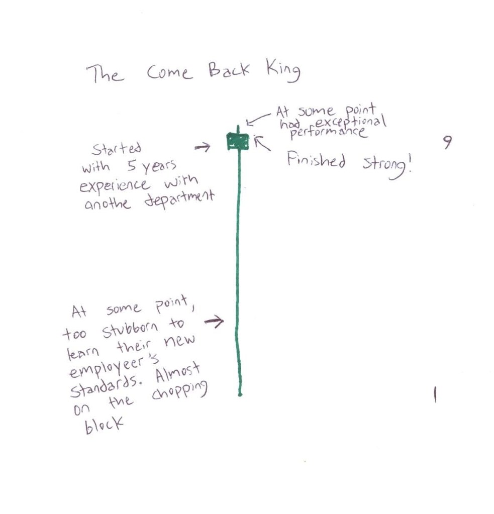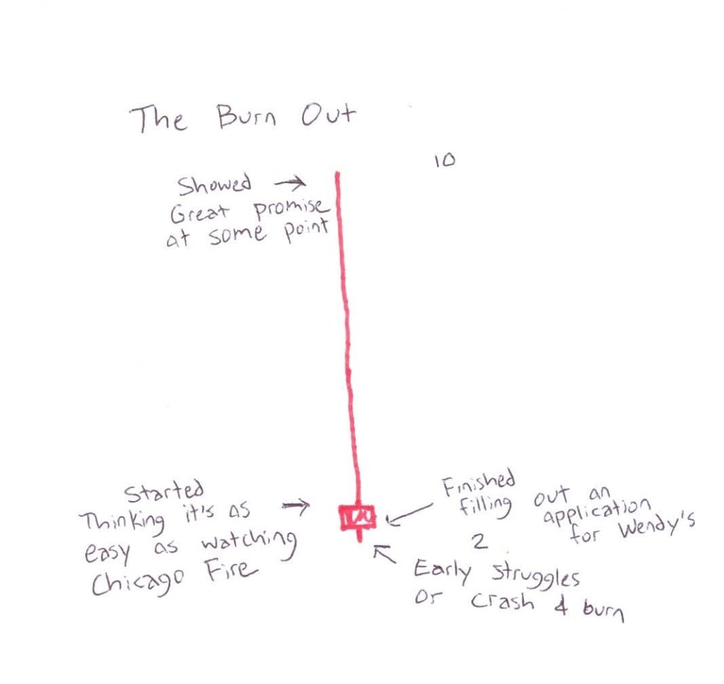 The grinder is the 16 weeks of learning how to become a firefighter. You are a MAGGOT! You are lower than dog shit, and you have few jobs to do other than shut your mouth and learn your trade. Over the course of those grueling 16 weeks, your overall skill level waxes and wanes. The good recruits start strong and finish stronger. I thought this would be a good example to show what candle stick patterns would look like for some of our recruit stereotypes. Say in theory, you could rate a recruit’s performance on a scale of 1-10, 10 being outstanding and anything below 2-3 meaning this job isn’t for you. The rating scale doesn’t change across the time frame of the academy. We are going to analyze some recruit performance candlesticks.